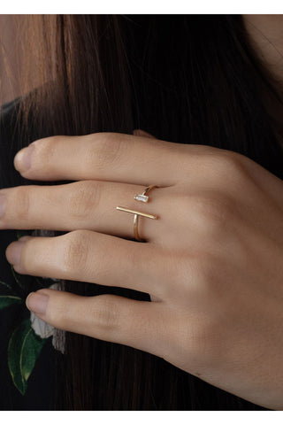 8 Ayar Açık Uçlu Şık Tasarımlı Baget Taşlı Altın Kadın Yüzük